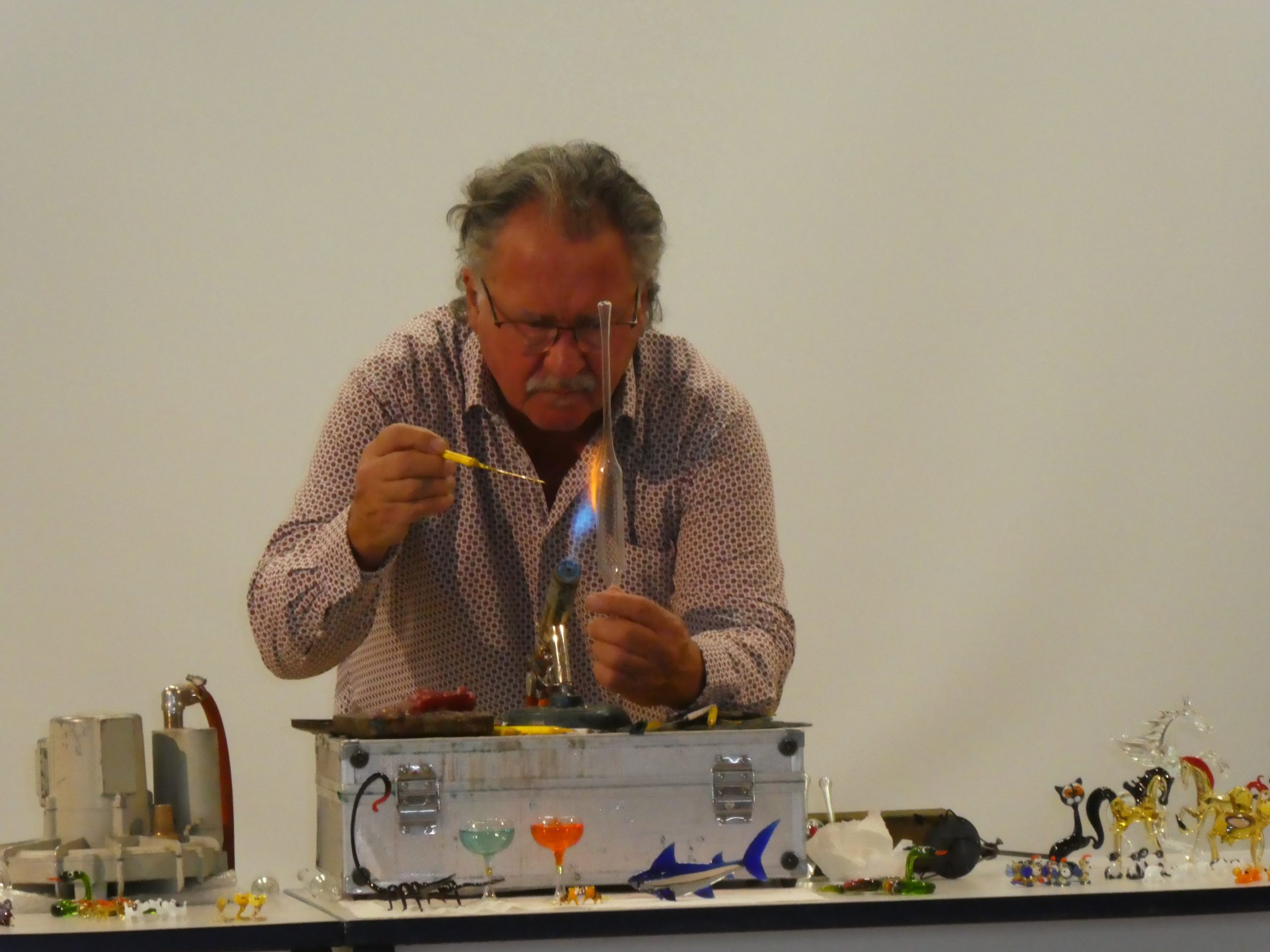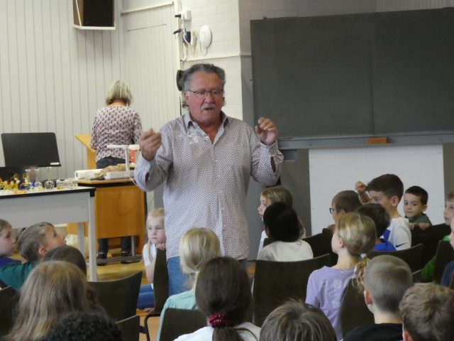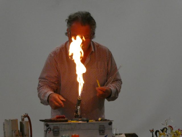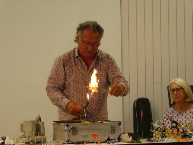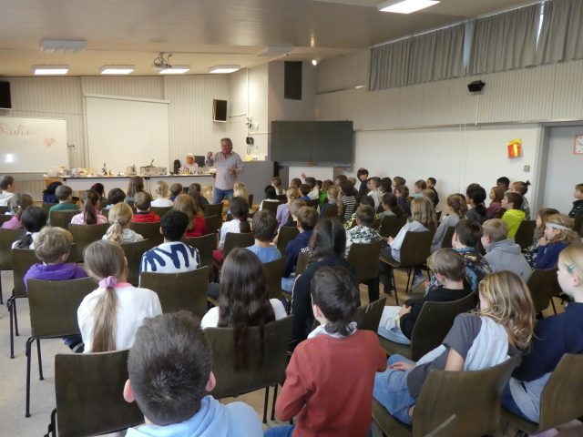 Am Donnerstag, den 23. Oktober besuchte uns nach einigen Jahren Pause wieder einmal der Coburger Glasbläser Herr Sommer, dieses Mal in Begleitung seiner ebenfalls in diesem Handwerk tätigen Frau. Schon am Vorabend stand das Wohnmobil des Paares vor der Schule bereit, um gleich am Morgen mit dem Aufbau für die Vorführung zu beginnen. In 3 aufeinanderfolgenden jeweils einstündigen Vorstellungen konnten dann alle Kinder der Hofäckerschule verfolgen, wie aus Glasrohlingen nacheinander eine Christbaumspitze, eine Vase und schließlich sogar ein Schwan entstand. Aufgelockert wurden die Vorführungen durch Einschübe zum Thema „Glas“ allgemein, dem Handwerk der Glasbläserei im Besonderen und durch die humorige Einbeziehung der Schulkinder. Ganz offenkundig hatten unsere Schülerinnen und Schüler große Freude und Interesse an den beeindruckenden Vorführungen. Im Anschluss konnten die Kinder ab der Mittagspause selbst hergestellte Glasprodukte direkt am Fahrzeug von Herrn Sommer erwerben, wobei der Andrang, wie schon in früheren Jahren, sehr groß war. Wir bedanken uns sehr herzlich bei Familie Sommer für die lehrreiche und spannende Darbietung. Das Kollegium der Hofäckerschule