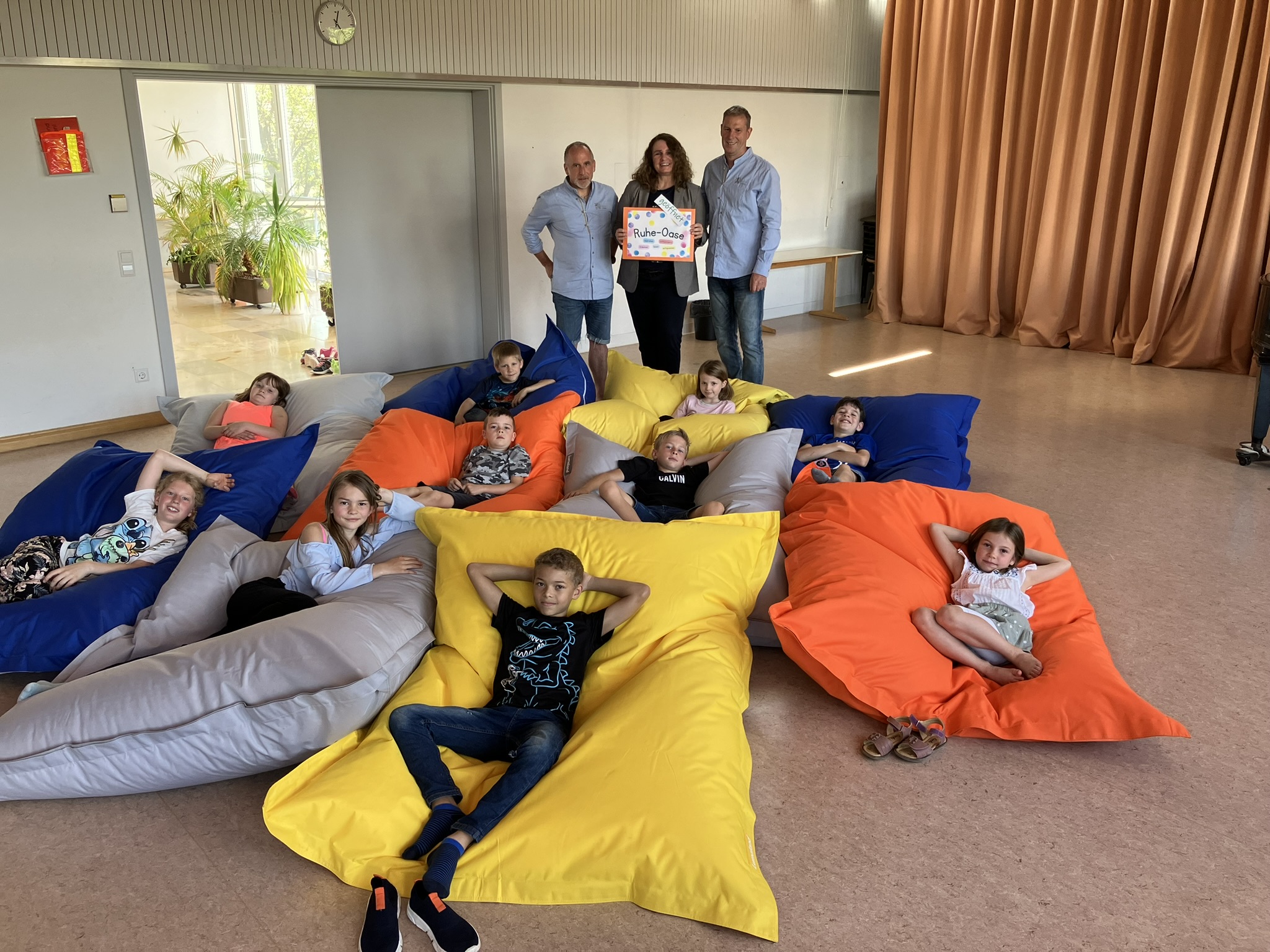 HERZlichen Dank, liebe Sersheimer Löwen, für die großzügige Spende von zwölf tollen XXL Sitzsäcken in den Hofäckerfarben gelb, orange, blau und grau. Dank dieser Spende können wir unseren Hofäckerkindern während der Mittagszeit im Musiksaal eine Ruhe-Oase anbieten. Darüber freut sich die Schulgemeinschaft sehr! Schulleitung und Kollegium der Hofäckerschule
