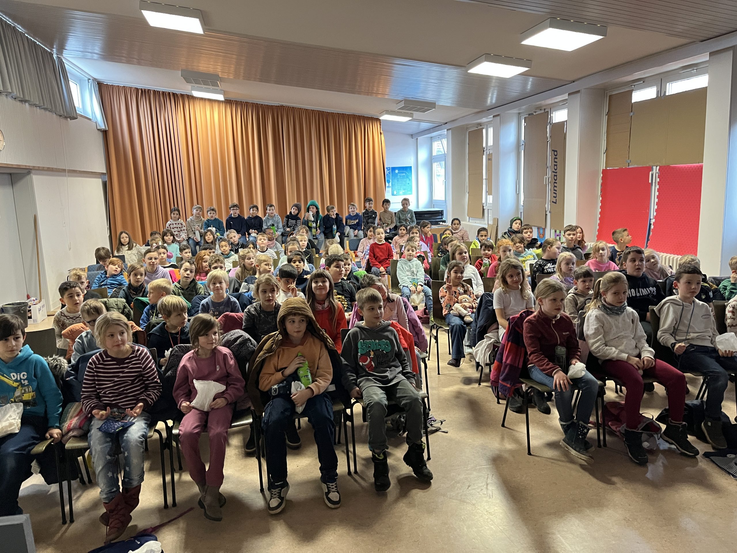 Knapp 200 Kinder versammelten sich voller Vorfreude im vorbereiteten Musiksaal, der sich für einen Nachmittag in einen großen Kinosaal verwandelte. Für die Erst- und Zweitklässler wurde der Film „Latte Igel und der magische Feuerstein“ gezeigt. Gebannt verfolgten die jungen Zuschauer das spannende Abenteuer des kleinen Igels und seiner Freunde. Die Dritt- und Viertklässler durften sich über den Film „Burg Schreckenstein“ freuen, der mit viel Humor und einer guten Portion Spannung für beste Unterhaltung sorgte.